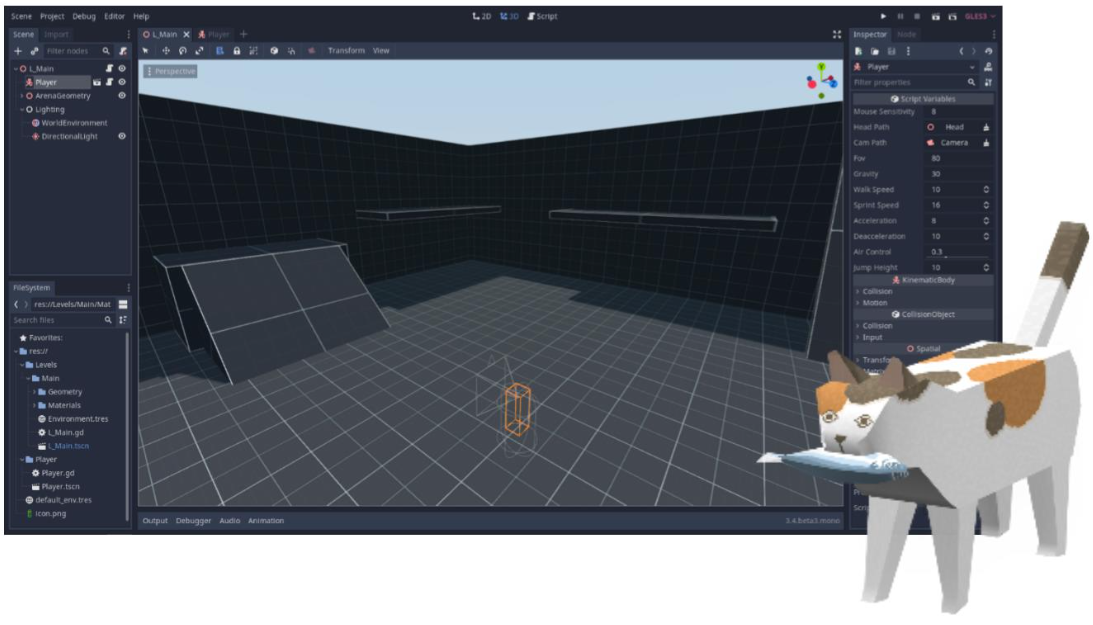 Ik ga een first-person 3D game maken in Godot Engine waarbij je een verlaten huis tegenkomt en er een paar dagen verblijft. Je ziet dat er iets mis is met de kat die in de buurt rondloopt en moet keuzes maken die uiteindelijk jouw overleving bepalen.